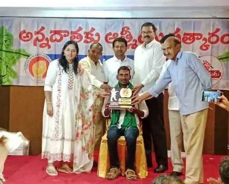 అవార్డు అందుకున్న యువ రైతు