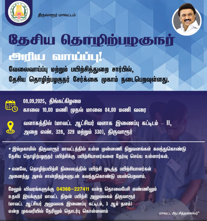 திருவாரூரில் தேசிய தொழில் பழகுநர் சேர்க்கை முகாம்
