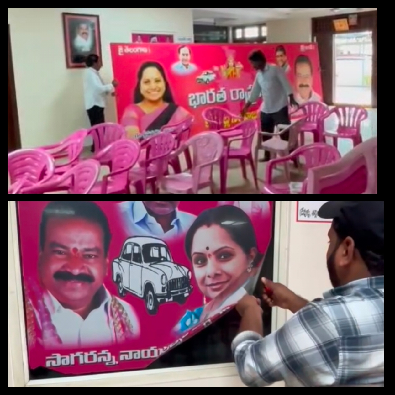 మెట్ పల్లి బీఆర్ఎస్ పార్టీ కార్యాలయం నుండి ఎమ్మెల్సీ కవిత ఫ్లెక్సీలు తొలగింపు