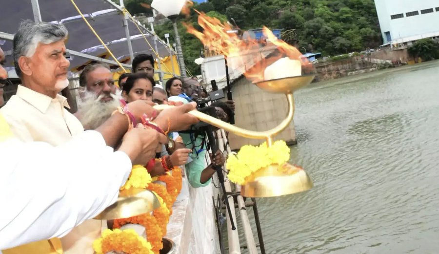 జల హారతి ఇచ్చిన చంద్రబాబు