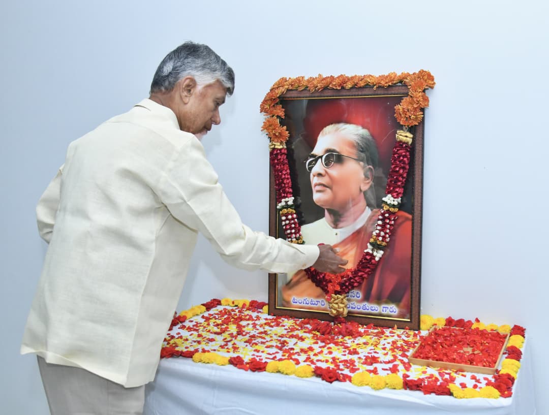 టంగుటూరి ప్రకాశం పంతులు జయంతి సందర్భంగా ఆయన చిత్రపటానికి పూలమాలవేసి నివాళులు అర్పించారు సీఎం చంద్రబాబు. ప్రముఖ స్వాతంత్ర సమర యోధుడిగా గుర్తింపు పొందారు. అంతే కాకుండా...
