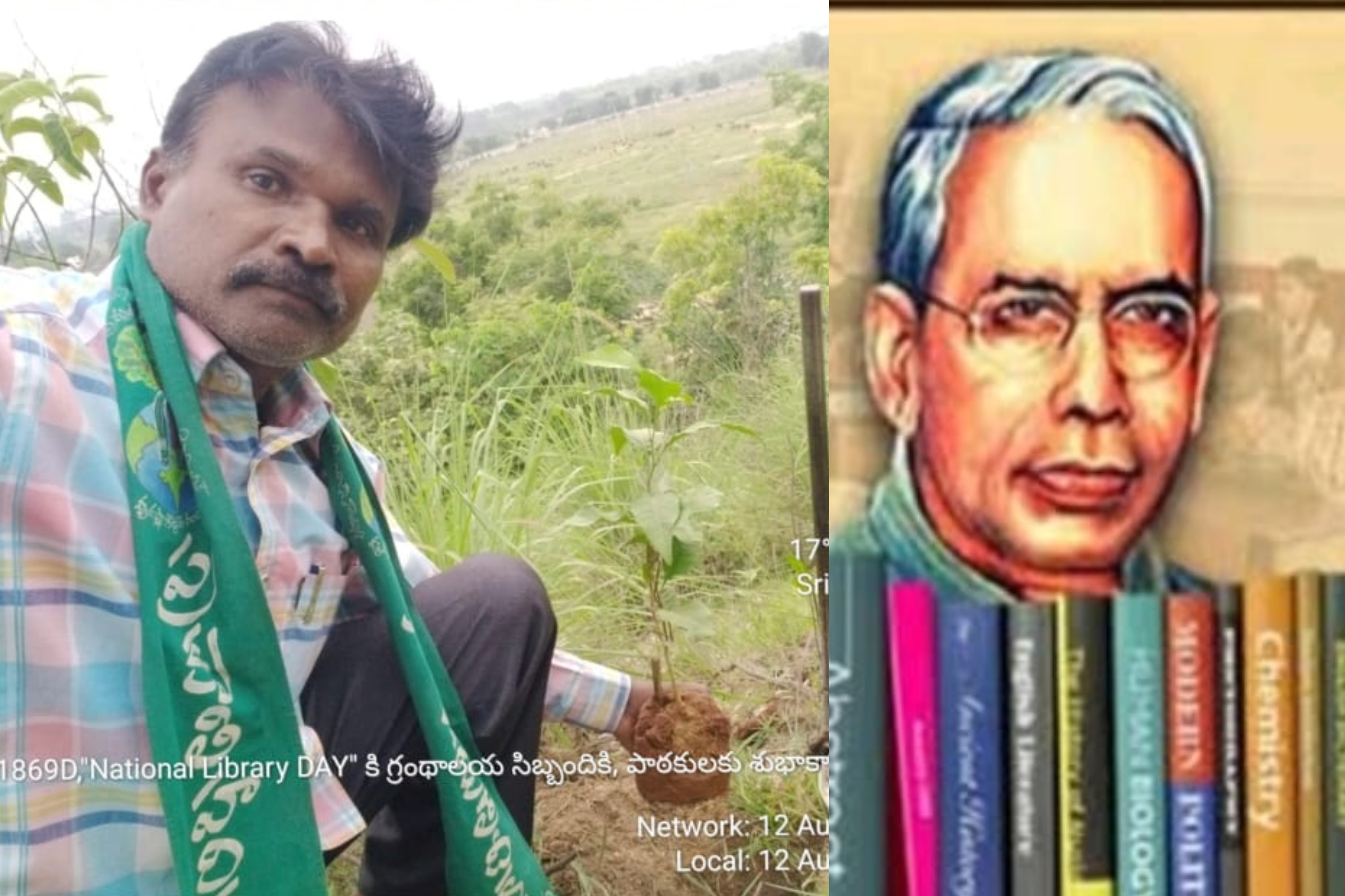 పుస్తక పాఠకులకు గ్రంథాలయ దినోత్సవ శుభాకాంక్షలు తెలుపుతూ మొక్కలు నాటారు భద్రాద్రి జిల్లా సింగరేణియన్ మన్ కీ బాత్ ప్రకృతి ప్రేమికుడు కెఎన్ రాజశేఖర్. చిరిగిన...