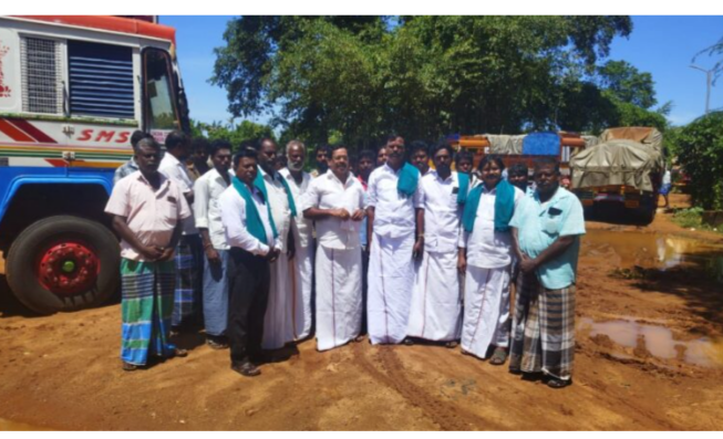 திருவாரூர் மாவட்டம் குடவாசலில் உள்ள நேரடி நெல் கொள்முதல் நிலையம் செல்லும் சாலை பள்ளங்கள் நிறைந்து உள்ளதால் அதிகாரிகள் உடனடியாக போர்க்கால அடிப்படையில் செப்பனிட வேண்டும், சட்ட...