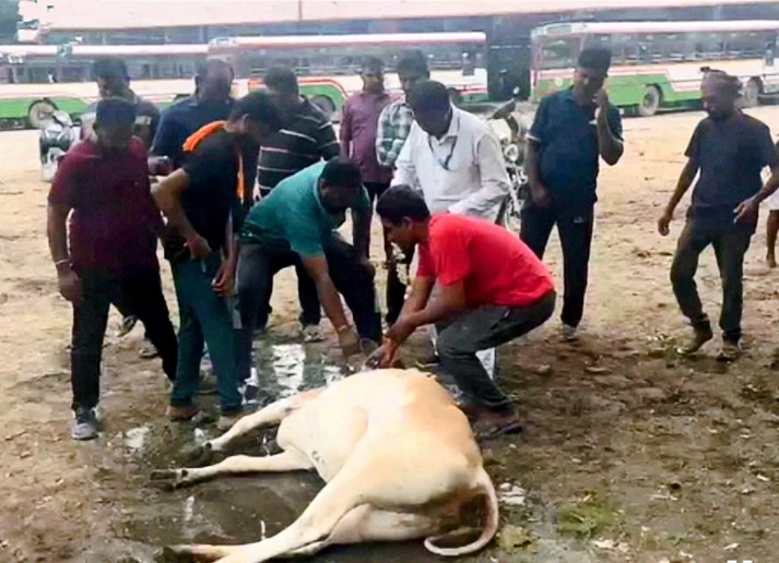 ఆవును ఖననం చేసిన VHP నాయకులు