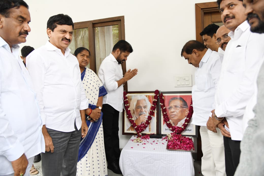 తెలంగాణ సిద్ధాంతకర్త ప్రొ. జయశంకర్ జయంతిని పురస్కరించుకుని ఆయన చిత్రపటానికి పూలమాల వేసి నివాళులు అర్పించారు సీఎం రేవంత్ రెడ్డి. ఆయనతో పాటు మంత్రి పొంగులేటి శ్రీనివాస్...