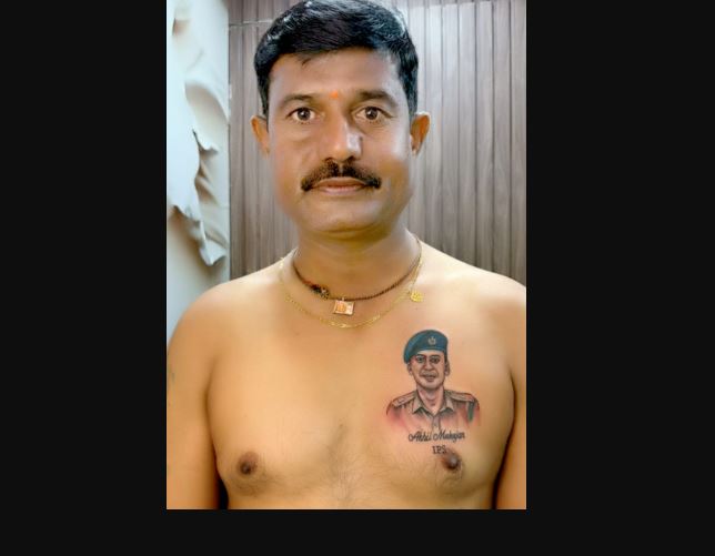 హోంగార్డ్ ఛాతిపై SP టాటూ చిత్రం