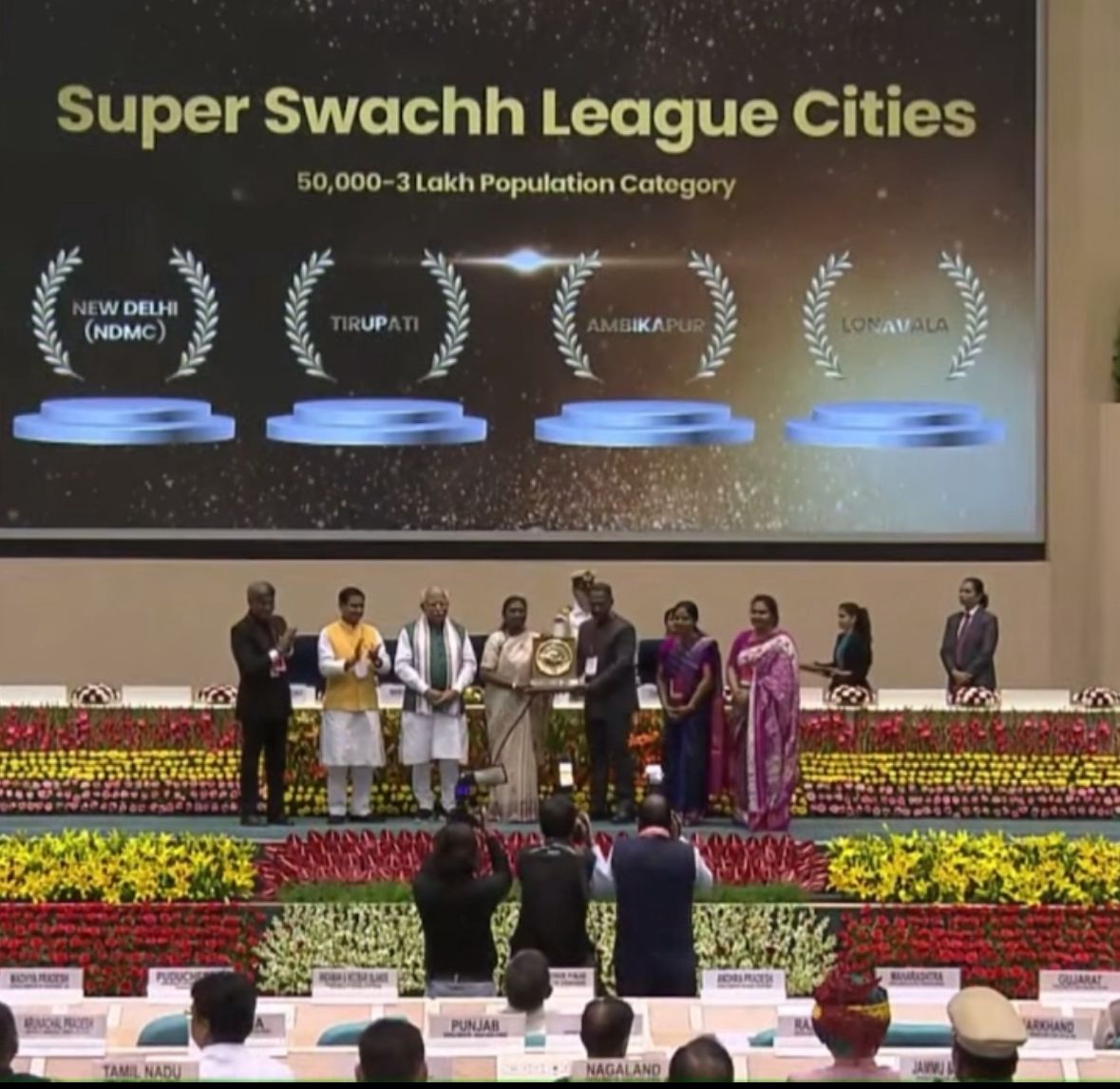 స్వచ్ఛ సర్వేక్షన్ అవార్డు ను తిరుపతి నగర మేయర్ డాక్టర్ శిరీష రాష్ట్రపతి భవన్ లో రాష్ట్రపతి ద్రౌపది ముర్ము చేతుల మీదుగా అందుకున్నారు. తిరుపతి...