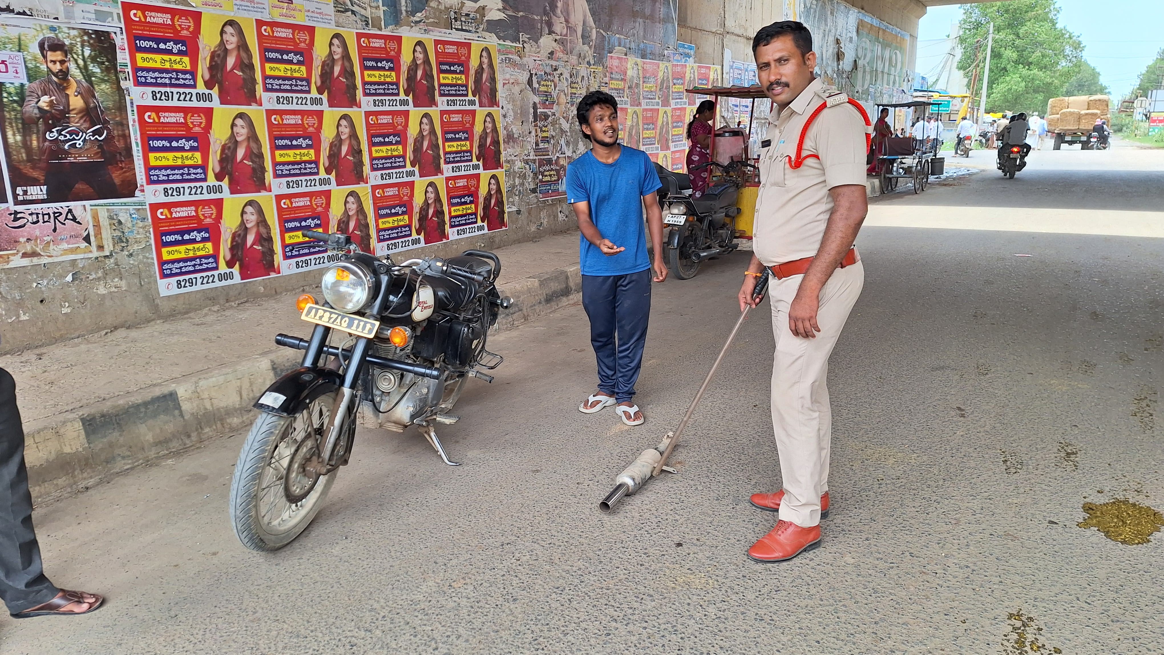 ప్రకాశం జిల్లా టంగుటూరులో సైలెన్సర్లను పెద్దగా సౌండ్ వచ్చే విధంగా మార్చి, వాటి ద్వారా ప్రజలకు అసౌకర్యం కలిగిస్తున్న ద్విచక్రవాహనదారులను పట్టుకొని వాళ్ల చేతనే, ఆ సైలెన్సర్లను...