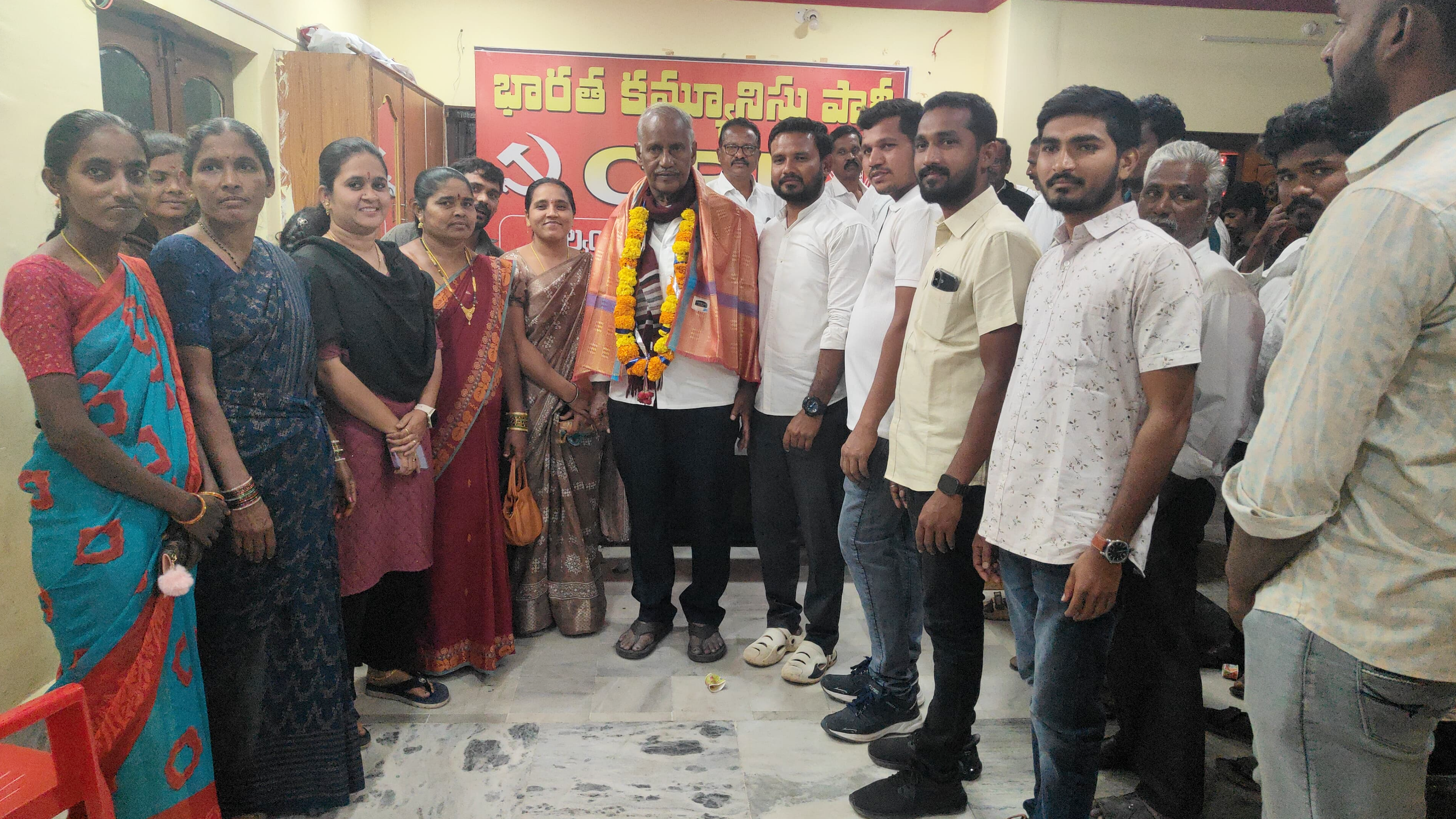 సిపిఐ పార్టీ వందేళ్లు పూర్తిచేసుకున్న సందర్భంగా పాల్వంచలోని సిపిఐ కార్యాలయంలో కొత్తగూడెం ఎమ్మెల్యే కూనంనేని సాంబశివరావును శేఖరం బంజారా గ్రామ ప్రజలు మర్యాదపూర్వకంగా కలిసి ఘనంగా సన్మానించారు....