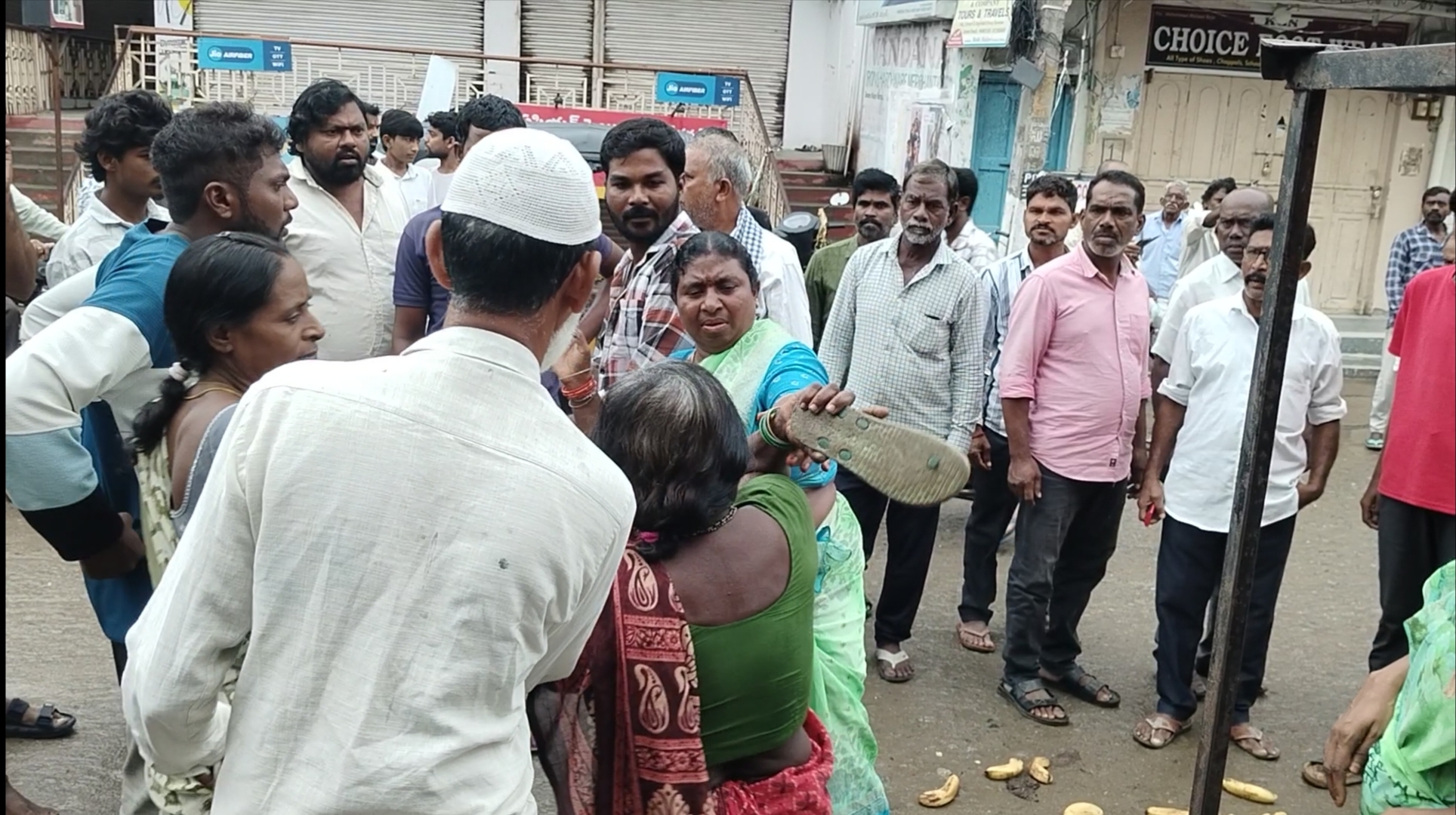 అరటి పండ్లు కొనుగోలు విషయంలో ప్రవర్తించిన ఓ యువకుడికి చెప్పుతో దేహ శుద్ధి