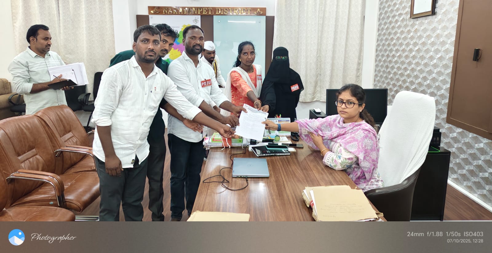 నారాయణపేట జిల్లా కేంద్రంలోని గాంధీనగర్ కాలనీలో నివసిస్తున్న చేనేత కార్మికులకు ఇళ్ల పట్టాలు ఇవ్వాలని టీయుసిఐ , సీపీఐ ఎంఎల్ మాస్ లైన్ పార్టీ నేతలు కలెక్టర్...