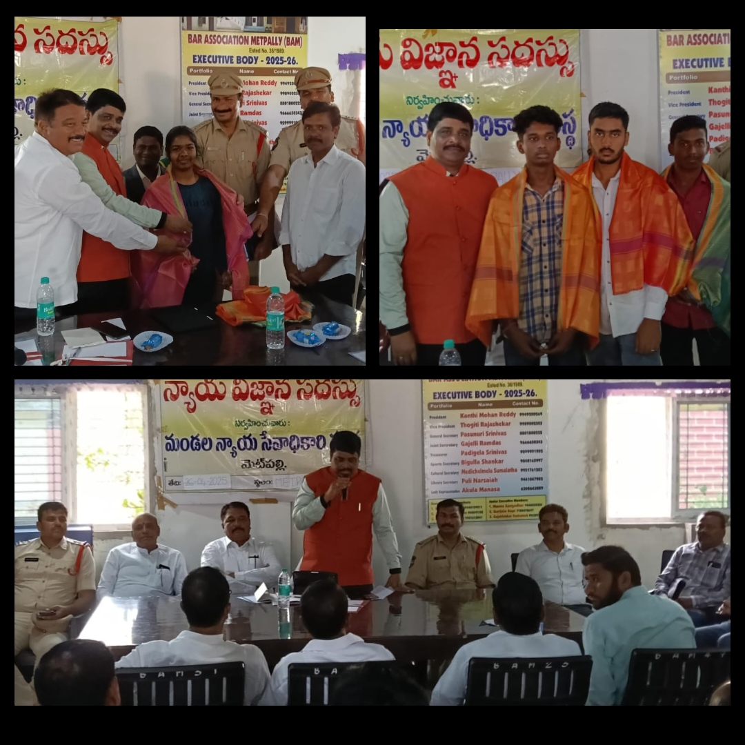 సమాజంలోని అన్ని వర్గాల ప్రజలకు న్యాయ విజ్ఞానం అందించేందుకే సదస్సులు నిర్వహిస్తున్నామని మెట్పల్లి సీనియర్ సివిల్ జడ్జి నాగేశ్వరరావు అన్నారు. మండల్ లీగల్ సర్వీసెస్ ఆధ్వర్యంలో మెట్పల్లిలో...