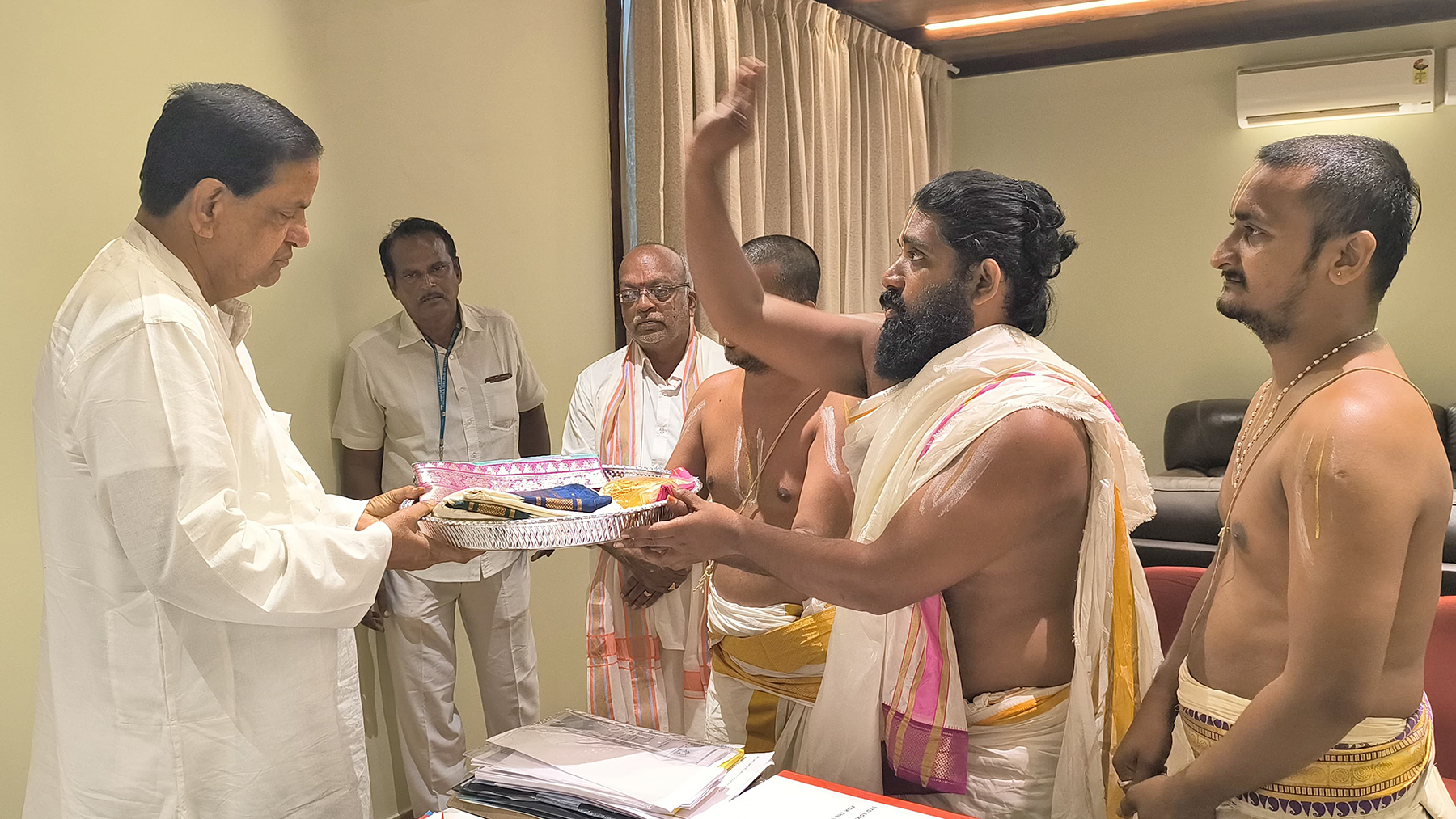 టీటీడీ చైర్మన్ కు అర్చకుల ఆశీర్వాదం
