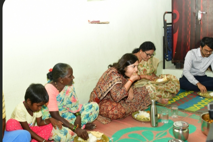 లబ్ధిదారుడు ఇంట్లో జిల్లా కలెక్టర్ భోజనం