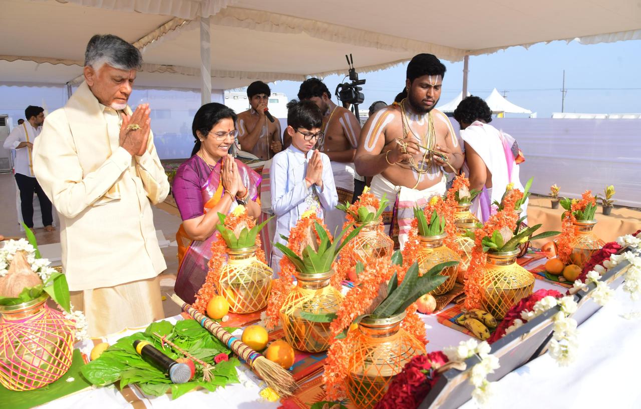 ఏపీ సీఎం చంద్రబాబు బుధవారం అమరావతి రాజధానిలోని వెలగపూడిలో కొత్త ఇంటి నిర్మాణం కోసం భూమి పూజ చేశారు. ఆయనతో పాటు సతీమణి భువనేశ్వరి, కొడుకు నారా...