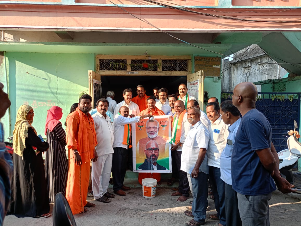 భారత ప్రధాని నరేంద్ర మోదీ తలపెట్టిన సన్న బియ్యం పంపిణీ చేస్తున్నందుకు ఆయన చిత్రపటానికి రేషన్ పంపిణీ షాప్ వద్ద పాలాభిషేకం చేశారు బిజెపి పట్టణ...