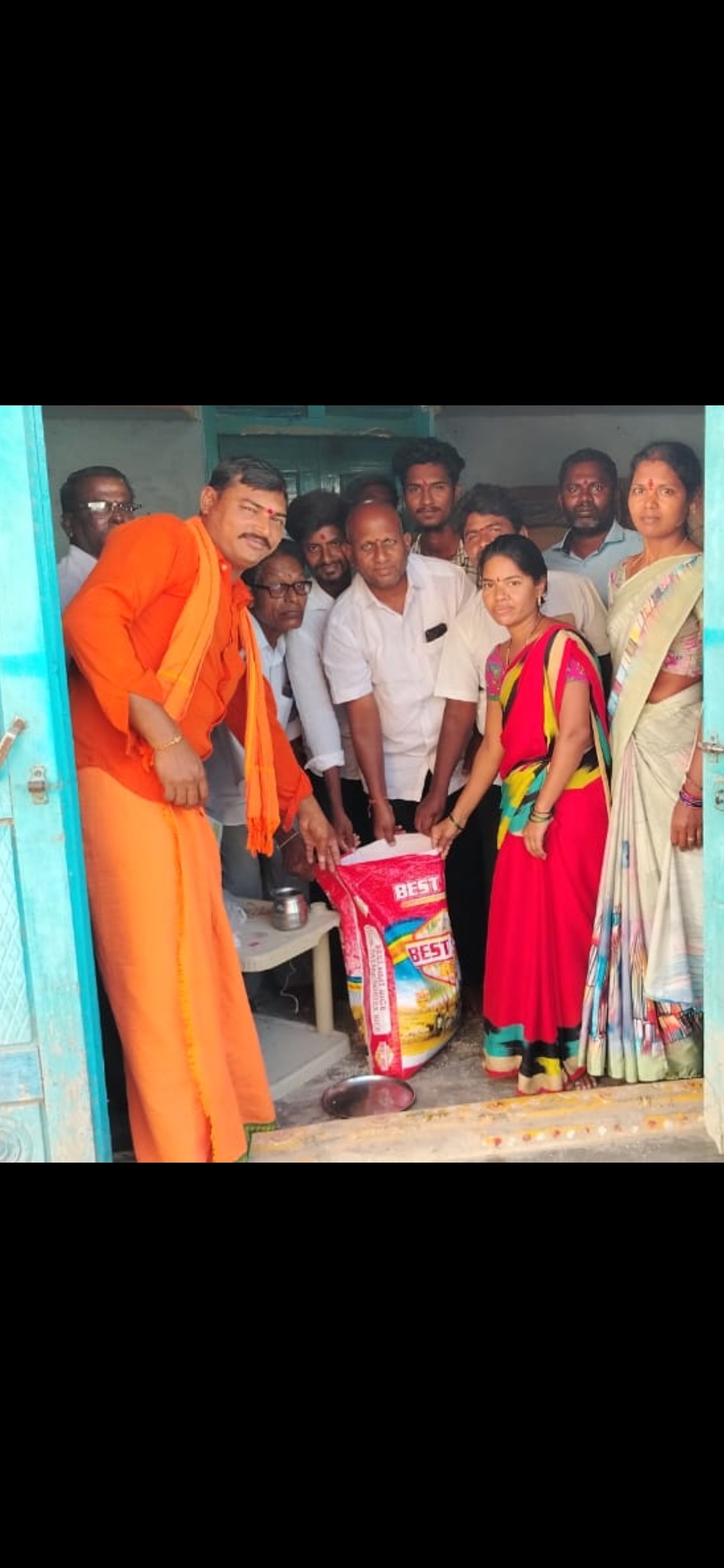 భారత ప్రధాని శ్రీ నరేంద్ర మోదీ తలపెట్టిన సన్న బియ్యం పంపిణీ చేస్తున్నందుకు శ్రీ నరేంద్ర మోదీ చిత్రపటానికి రేషన్ పంపిణీ షాప్ వద్ద పాలాభిషేకం...