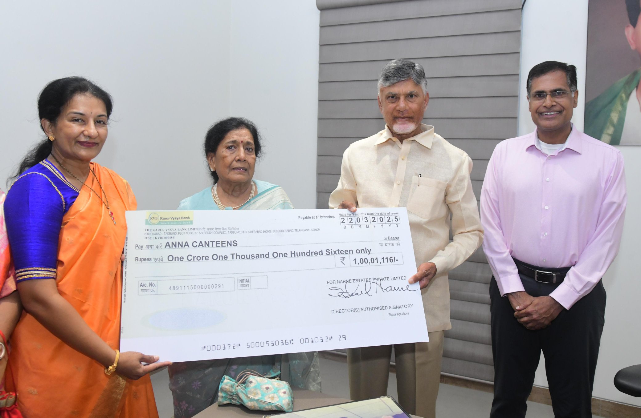 అన్న క్యాంటీన్ కు రూ. కోటి విరాళం
