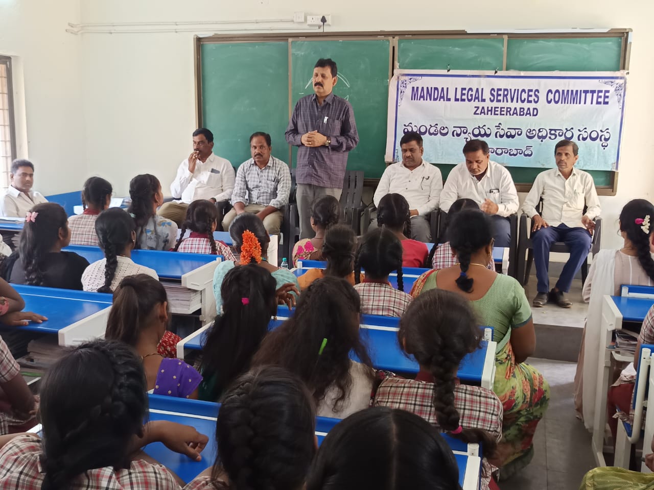 జహీరాబాద్ మండల లీగల్ సర్వీసెస్ కమిటీ ఆధ్వర్యంలో ఝరాసంగం మండల కేంద్రంలో గల ZPHS పాఠశాలలో, కస్తూర్భా బాలికల విద్యాలయంలో విద్యార్థులకు చట్టాలపై అవగాహన సదస్సును ...