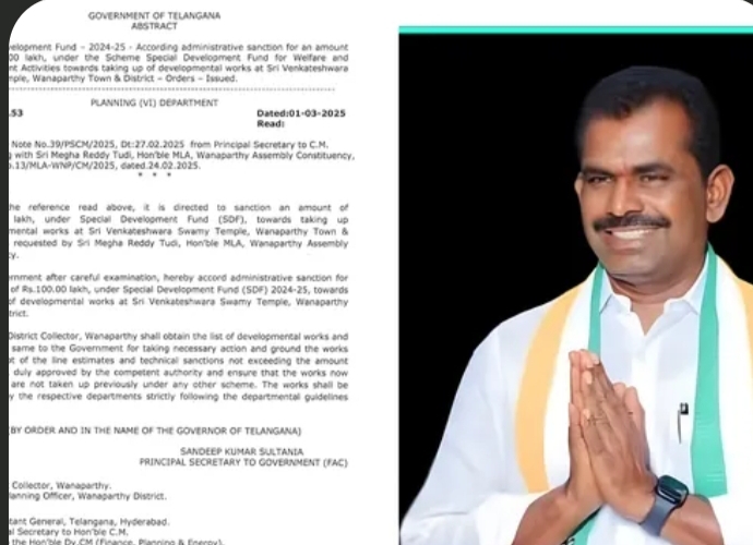 WNP: జిల్లా కేంద్రంలోని వెంకటేశ్వర స్వామి ఆలయ అభివృద్ధి కోసం కాంగ్రెస్ ప్రభుత్వం రూ. కోటి మంజూరు చేస్తూ జీఓ ఆర్టీ నెంబర్ 53 ప్రకారం ఉత్తర్వులు...