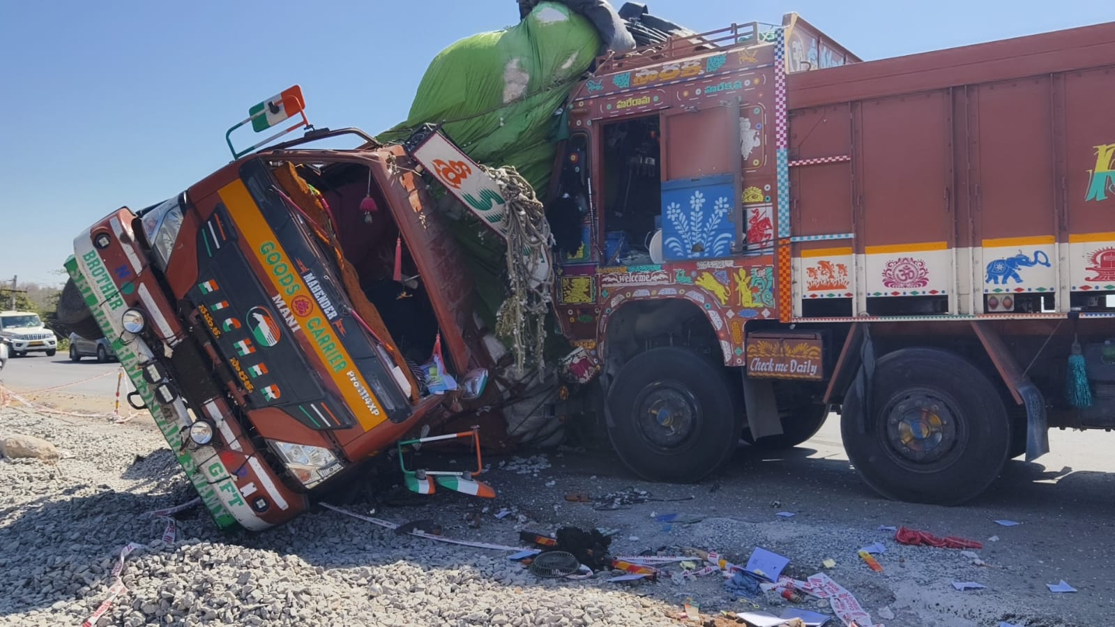 అదుపుతప్పి లారీని ఢీకొట్టిన డీసీఎం వ్యాన్