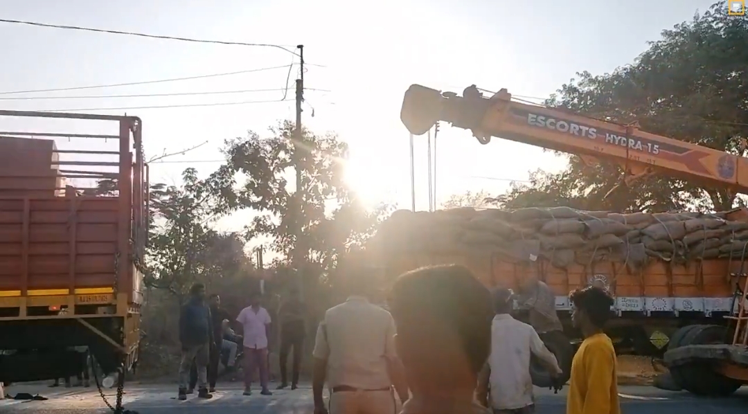 వ్యాన్ లారీ ఢీ - భారీగా నిలిచిన ట్రాఫిక్