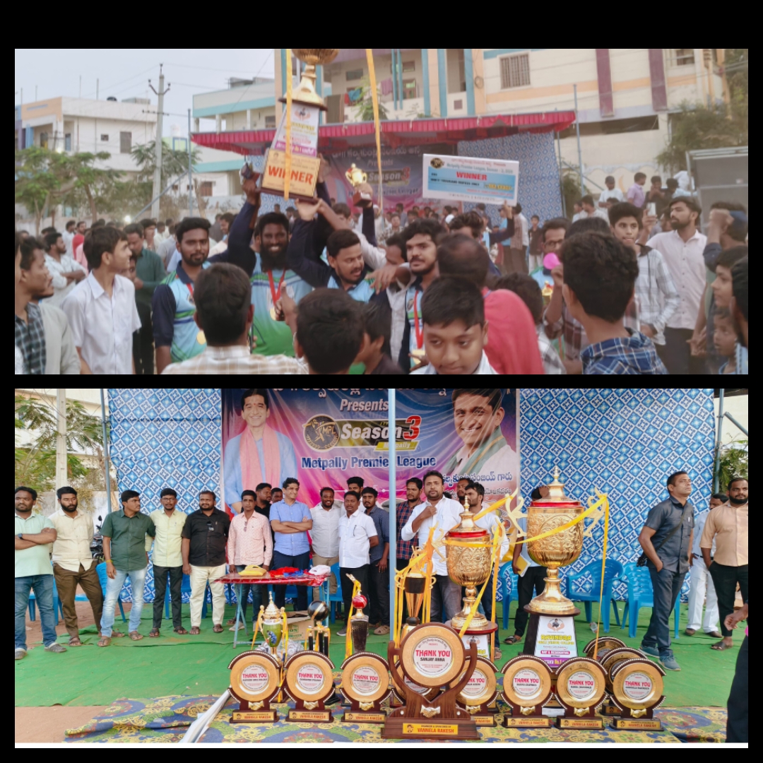 మెట్ పల్లి పట్టణంలో గత కొన్నిరోజులుగా నిర్వహిస్తున్న MPL సీజన్-3 క్రికెట్ టోర్నమెంట్ విజేతగా SRJ జట్టు నిలిచింది. రన్నర్ గా రాహుల్ స్ట్రైకర్స్ జట్టు నిలిచింది....