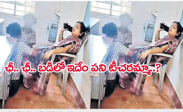 స్టూడెంట్స్తో కాళ్లు పట్టించుకున్న టీచర్