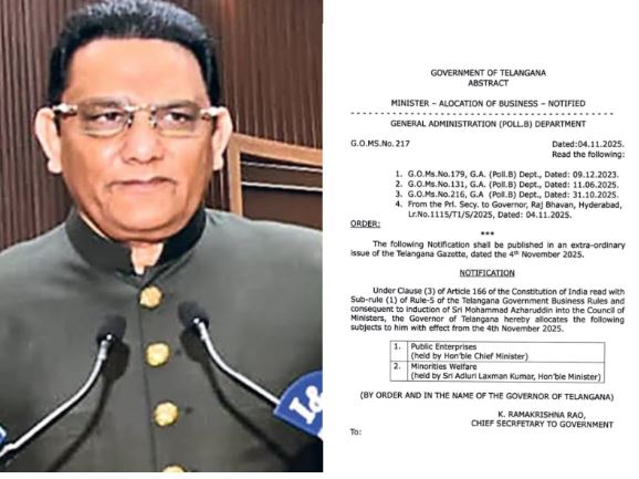 అజాహరుద్దీన్కు 2 శాఖలు కేటాయింపు మైనార్టీ సంక్షేమం, పబ్లిక్ ఎంటర్ప్రైజెస్