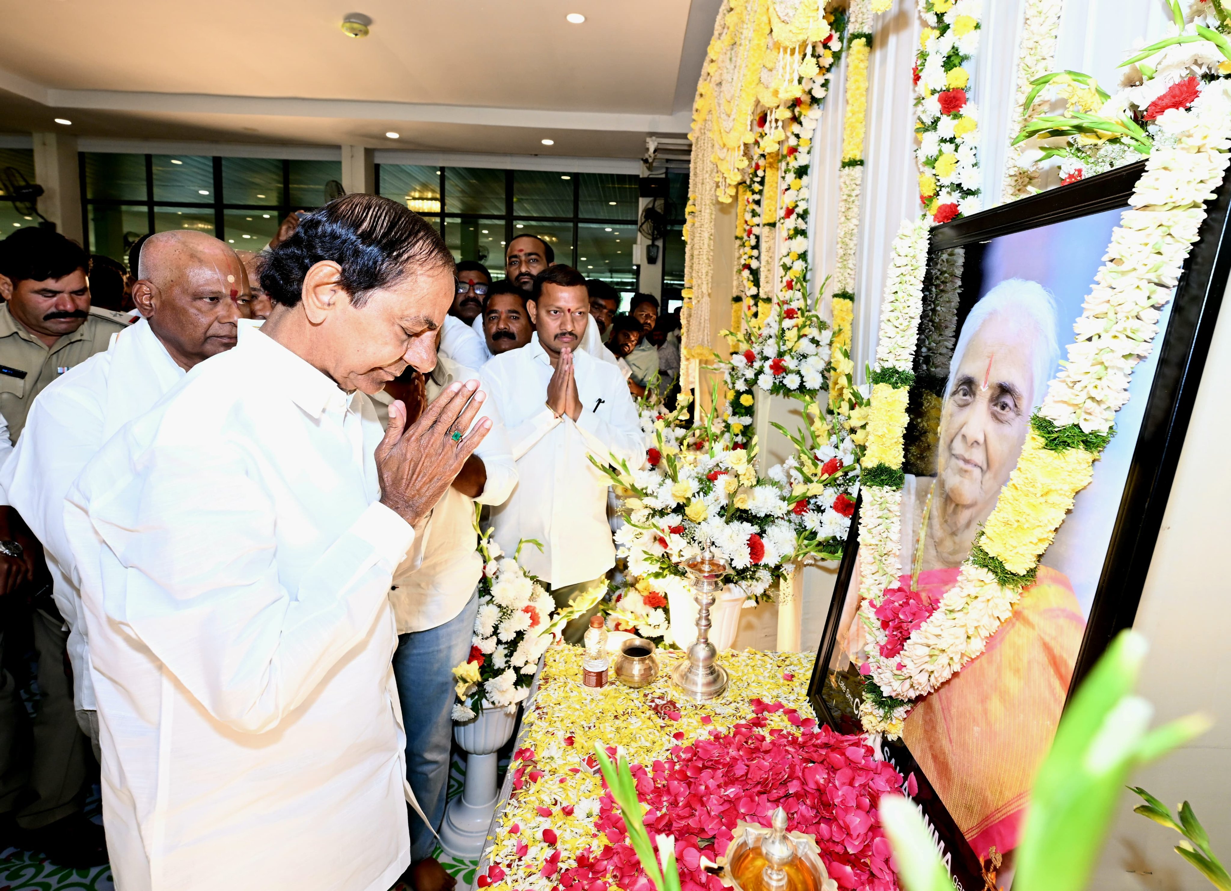 కొంపల్లిలో సోదరి చీటి సకలమ్మ ద్వాదశ దిన కర్మ కార్యక్రమానికి హాజరయ్యారు మాజీ సీఎం కేసీఆర్. చిత్రపటానికి పూలమాలలు వేసి నివాళులు అర్పించారు. కేటీఆర్, హరీశ్ రావు,...