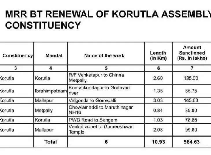 కోరుట్ల నియోజకవర్గ అభివృద్ధికి నిధులు మంజూరు