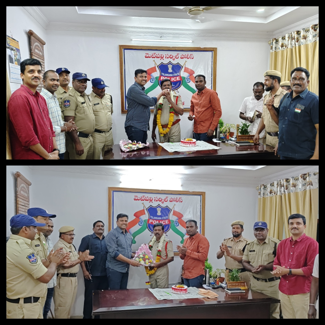 ప్రతిష్ఠాత్మకమైన ఇండియన్ పోలీస్ మెడల్ కు ఎంపికైన మెట్ పల్లి సిఐ నిరంజన్ రెడ్డిని పోలీస్ సిబ్బంది, ఘనంగా సన్మానించారు. కేక్ కట్ చేయించి స్వీట్లు...