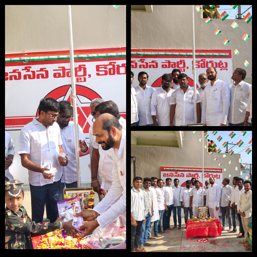 76వ గణతంత్ర దినోత్సవాన్ని పురస్కరించుకుని కోరుట్ల పట్టణ జనసేన పార్టీ ఆధ్వర్యంలో జాతీయ పతాక ఆవిష్కరణ వేడుకలు ఘనంగా నిర్వహించారు. ప్రభుత్వ పాఠశాలలోని పిల్లలకు నోట్ బుక్స్,...