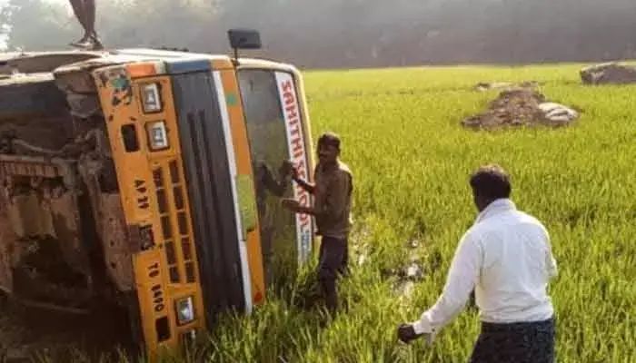 స్కూల్ బస్సు బోల్తా.. స్టూడెంట్స్ సేఫ్