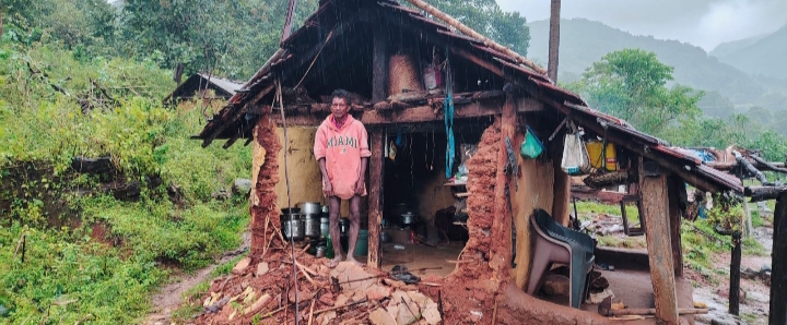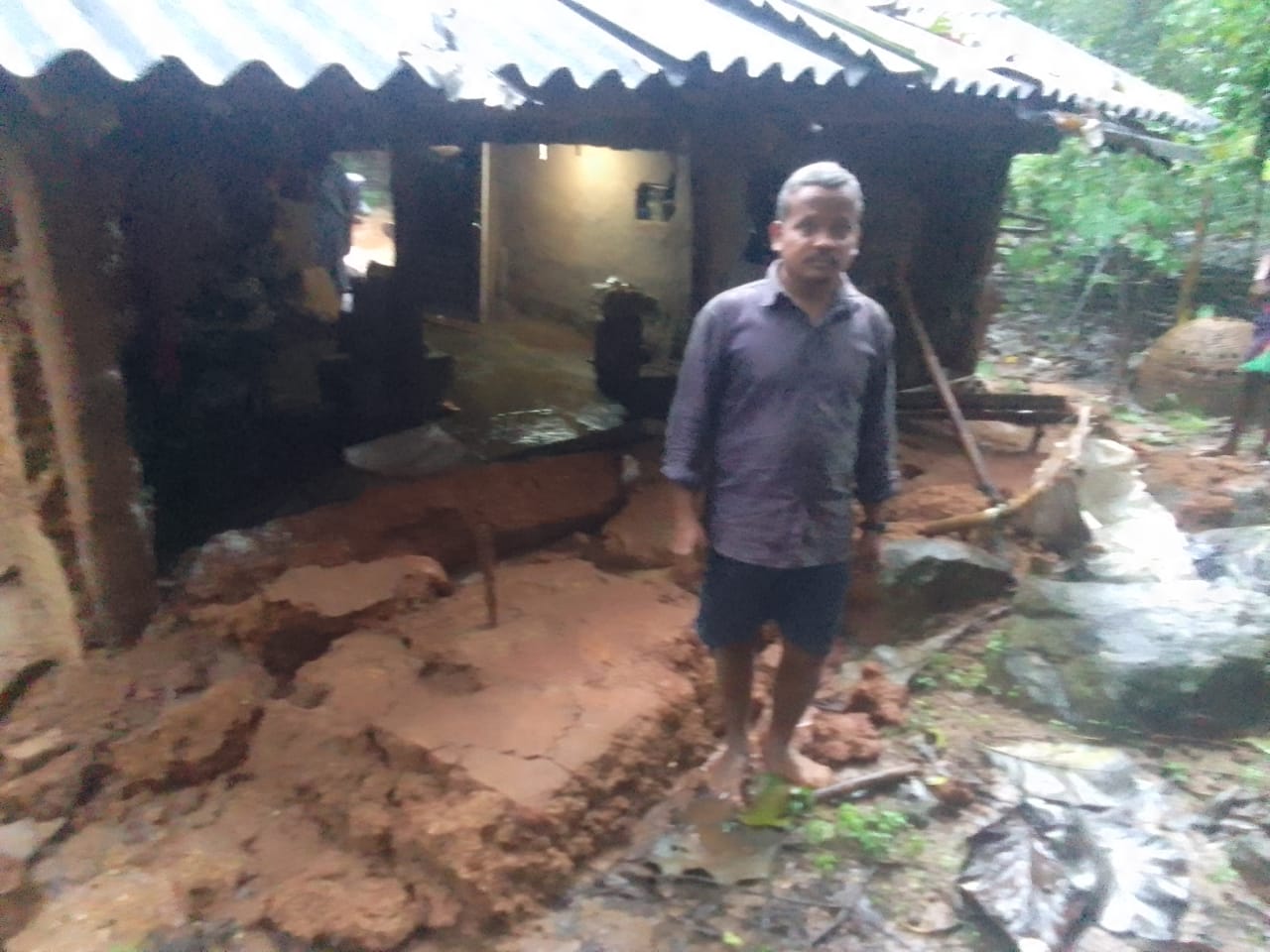 తుపాన్ దాటికి గిరిజనుడి ఇల్లు ధ్వంసం
