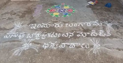 మొపాల్ మండల కేంద్రంలో నిజామాబాద్ జిల్లా ప్రజల ఎన్నో సంవత్సరాల కల పసుపు బోర్డును ఏర్పాటు చేసిన సందర్భంగా ముగ్గు రూపంలో మొపాల్ గ్రామానికి చెందిన అంగలి...