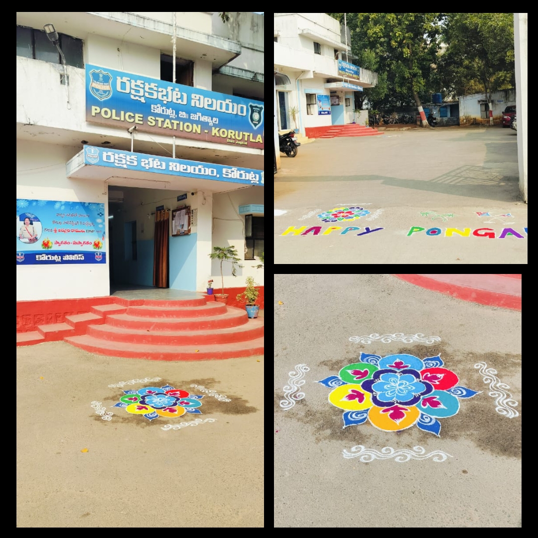 కోరుట్ల పోలీస్ స్టేషన్ ఎదుట సంక్రాంతి ముగ్గులు వేశారు. ఈ సందర్భంగా కోరుట్ల పోలీసులు మాట్లాడుతూ.. పోలీస్ స్టేషన్ అంటే తుపాకులు, లాఠీలే కాదు.. రంగుల రంగవల్లులు...