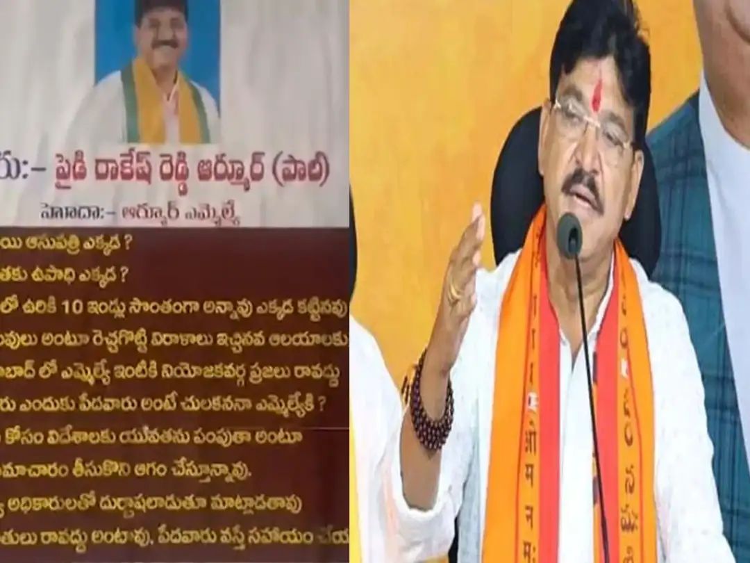 ఆర్మూర్ ఎమ్మెల్యే రాకేష్ రెడ్డికు ఊహించని షాక్ తగిలింది. ఆర్మూర్ లో మరోసారి పోస్టర్ల కలకలం తెరపైకి వచ్చింది. ఎమ్మెల్యే రాకేష్ రెడ్డి నియోజకవర్గానికి రావొద్దంటూ వెలిశాయి...