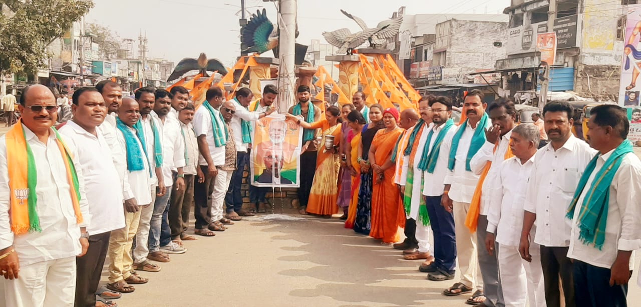 మోదీ, అర్వింద్ చిత్రపటాలకు పాలాభిషేకం