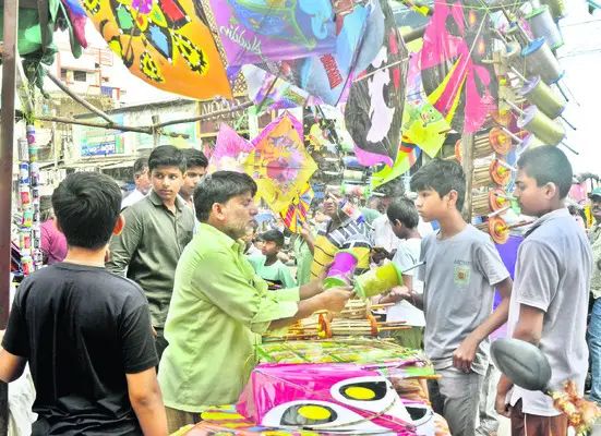 నిజామాబాద్ జిల్లాలో సంక్రాంతి శోభ సంతరించుకుంది. సంక్రాంతి వచ్చిదంటే చిన్నపెద్ద తేడా లేకుండా పతంగులను ఎగురవేస్తారు. ప్రధాన పోస్టాఫీస్ వద్ద గల పతంగుల దుకాణాల్లో సందడి నెలకొంది....