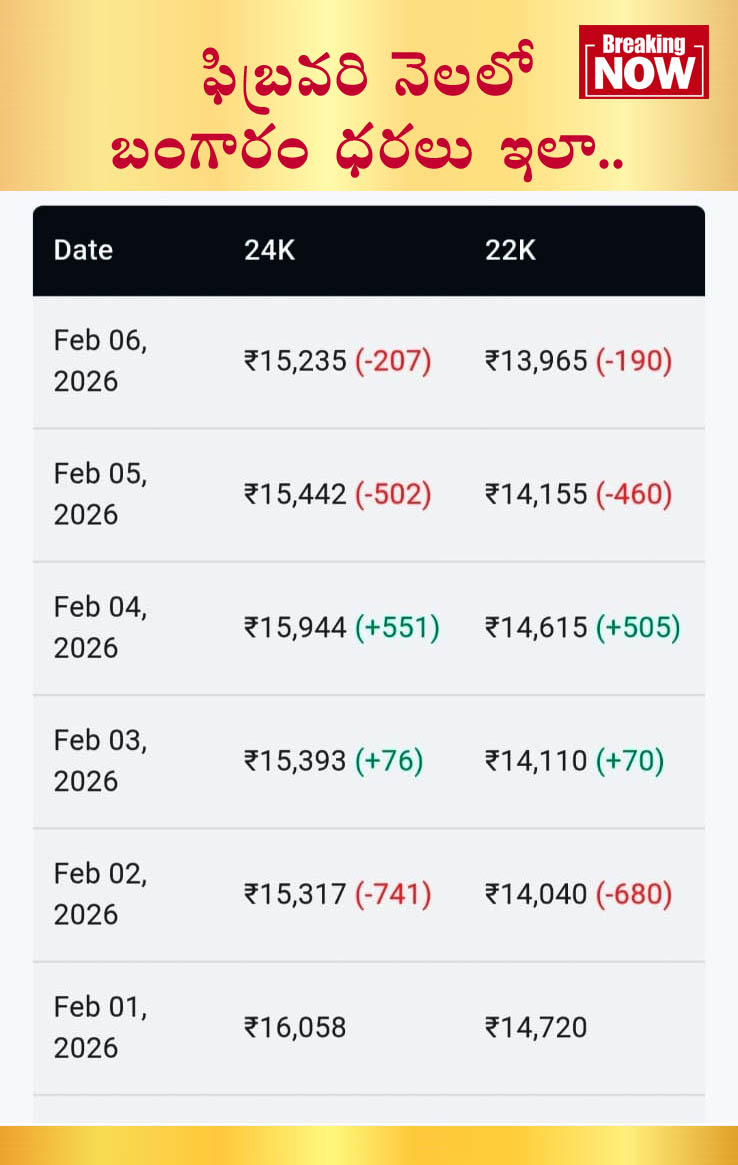 ఫిబ్రవరి నెలలో ఇప్పటి వరకు బంగారం ధరలు ఇలా..