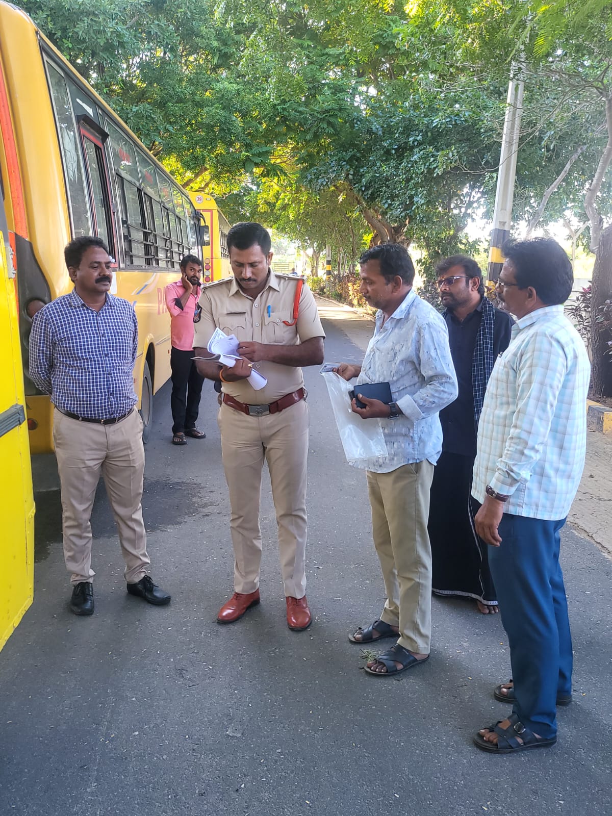 ఫేస్ కాలేజ్ బస్సులను తనిఖీ చేసిన ఎస్ఐ నాగమల్లేశ్వరరావు