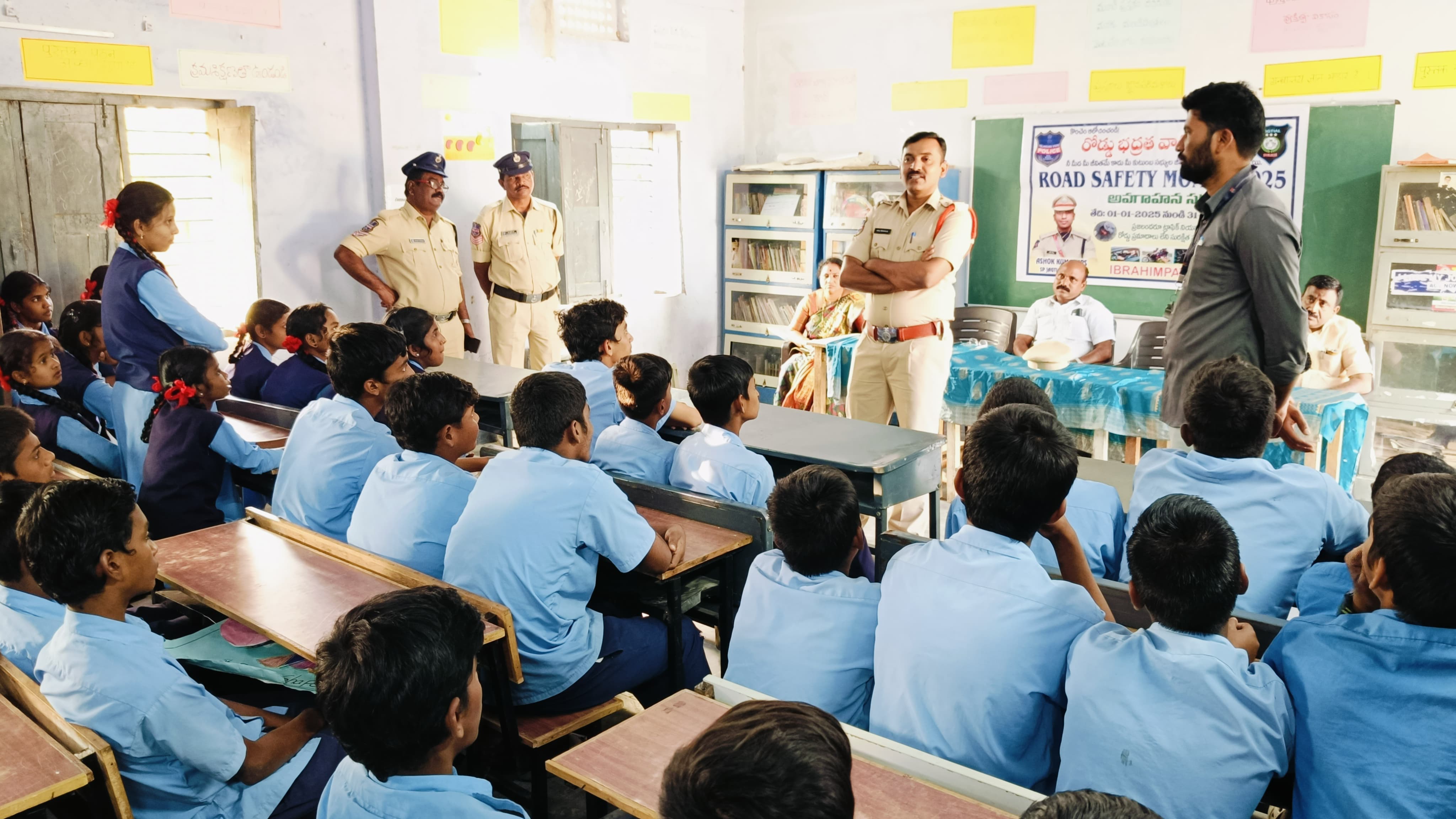 రోడ్డు భద్రతా మాసోత్సవాలలో భాగంగా ఇబ్రహీంపట్నం ప్రభుత్వ ఉన్నత పాఠశాలలో విద్యార్థులకు ఎస్ఐ అనిల్ కుమార్ రహదారి భద్రతా నియమాలు, నిబంధనలతో పాటు వివిధ అంశాలపై అవగాహన...