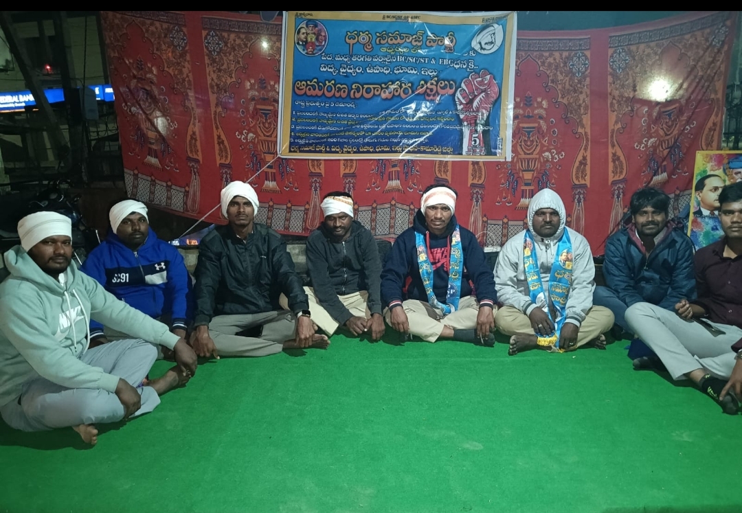 రాత్రి చలిని సైతం లెక్కచేయకుండా ధర్మ సమాజ్ పార్టీ నాయకుల దీక్ష