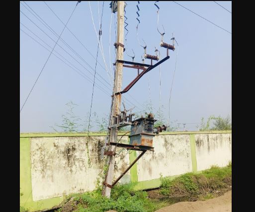 ప్రమాదకరంగా వంగిన విద్యుత్ స్తంభం