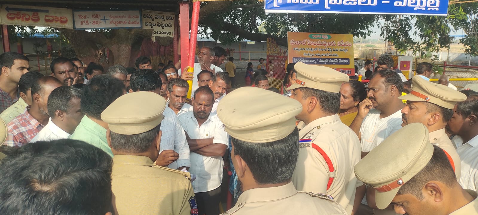 వెల్లుల్ల ఎల్లమ్మ వద్ద గ్రామస్థుల ఆందోళన