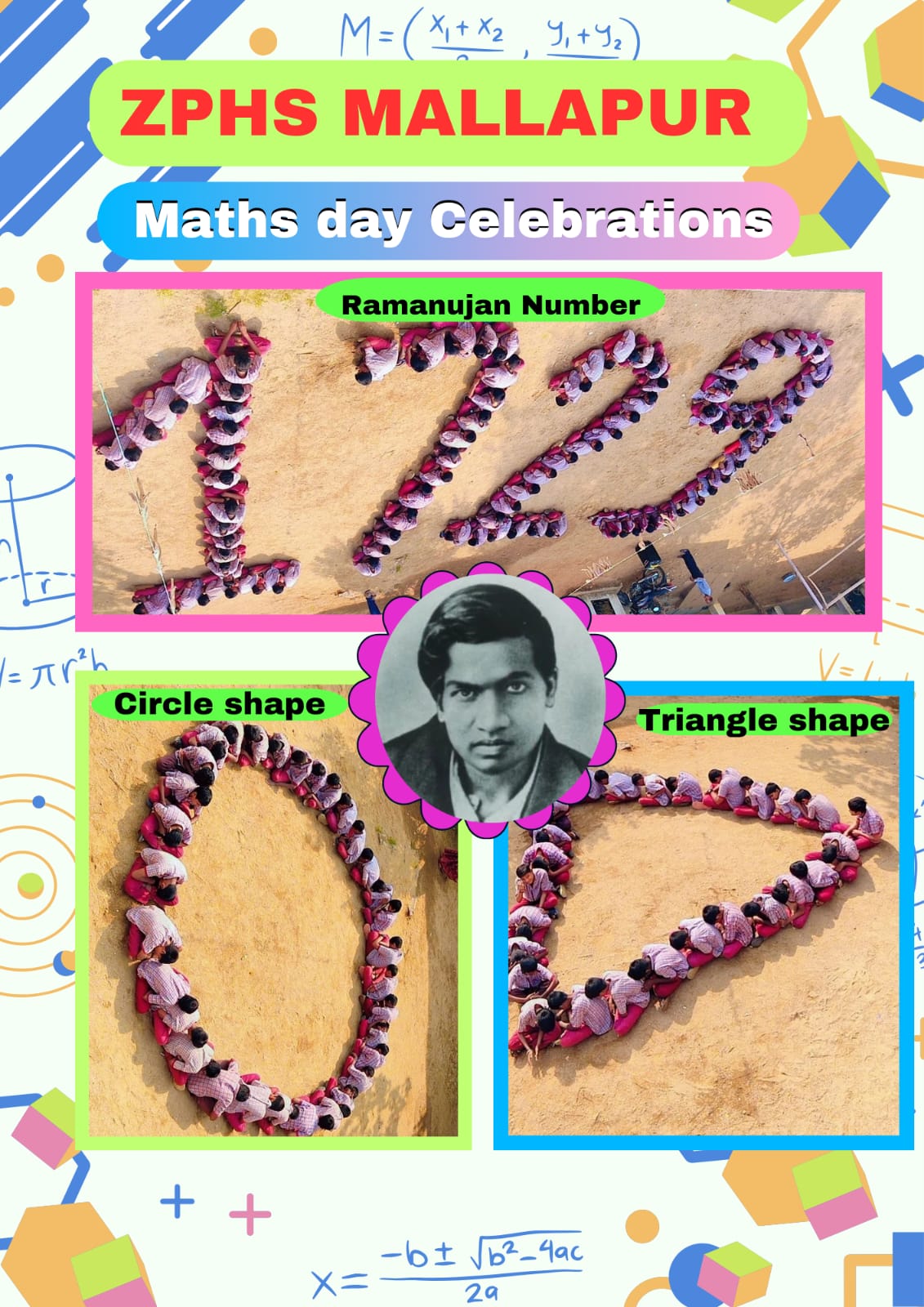 మల్లాపూర్ జిల్లా పరిషత్ ఉన్నత పాఠశాలలో ప్రపంచ ప్రఖ్యాతిగాంచిన గణిత శాస్త్రవేత్త శ్రీనివాస రామానుజన్ జయంతి సందర్భంగ ఉత్సవాలు నిర్వహించడం జరిగింది ఇందులో భాగంగా విద్యార్థిని విద్యార్థులకు...