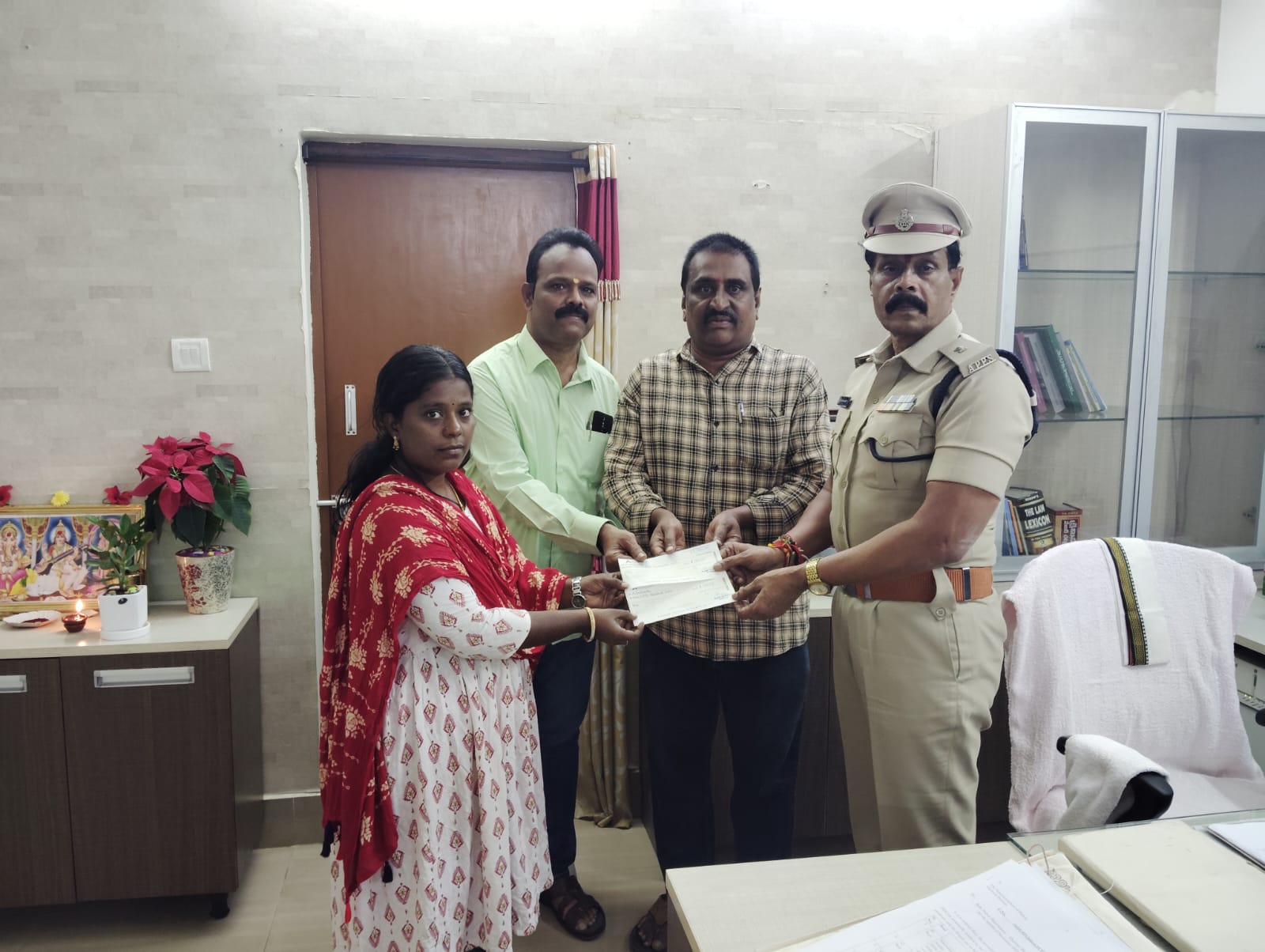 చిత్తూరు జిల్లా నిండ్ర పోలీస్ స్టేషన్లో విధులు నిర్వహిస్తూ రోడ్డు ప్రమాదంలో మరణించిన వినోద్ కుమార్ కుటుంబానికి ఏఎస్పీ రాజేశఖర్ సాయం చేశారు. ఎం. కళావతికి విడో...
