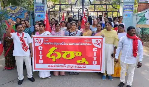 ఆదిలాబాద్ టౌన్మెప్మా ఆర్పీలను ప్రభుత్వ ఉద్యోగులుగా గుర్తించాలని సీఐటీయూ జిల్లా ఉపాధ్యక్షుడు అగ్గిమల్ల స్వామి అన్నారు. ఆర్పీలతో కలిసి సీఐటీయూ ఆధ్వర్యంలో కలెక్టర్ కార్యాలయం ఎదుట ధర్నా...