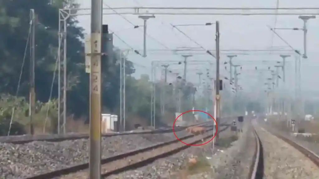 రైలు పట్టాలు దాటుతూ కెమెరాకు చిక్కిన పెద్దపులి